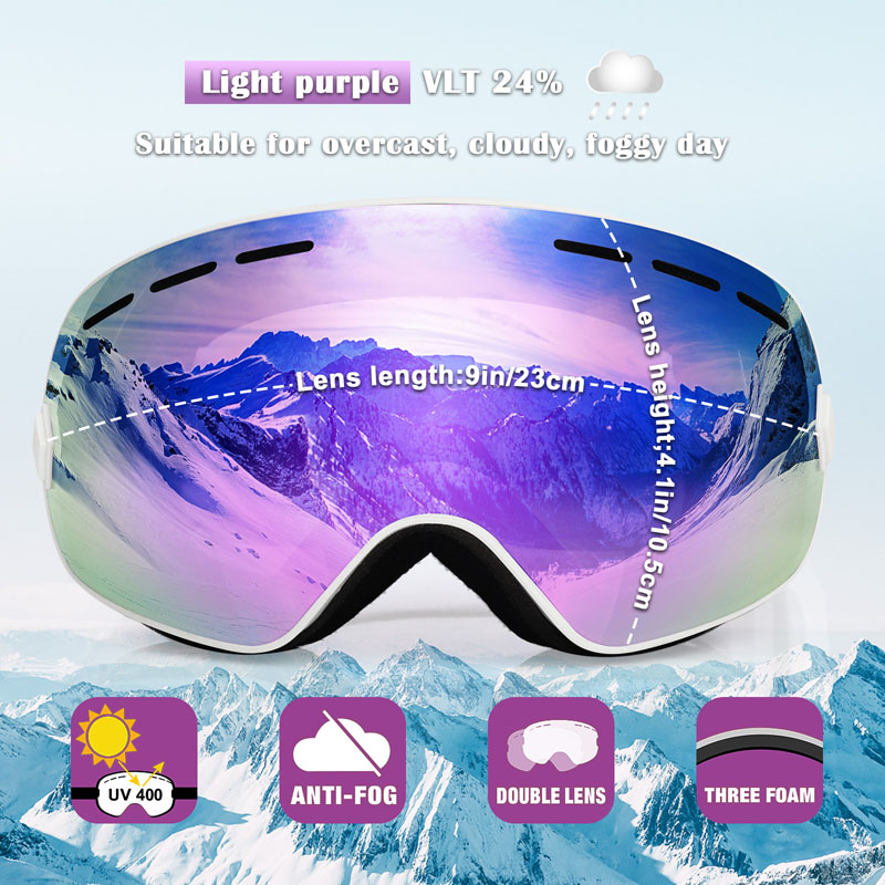 เลนส์ Revo คู่ทรงกลม: แว่นตาเล่นสกีสำหรับผู้ใหญ่มืออาชีพออกแบบเป็นเฟรม เลนส์ของแว่นตาสกีนั้นชัดเจนมาก แว่นตากีฬาฤดูหนาวจะพาคุณกว้างและมองเห็นได้อย่างกว้างใหญ่คุณสามารถเห็นฉากหิมะที่สวยงามโดยไม่ต้องปิดกั้นมุมมองของคุณเมื่อคุณกำลังลงเนิน การเคลือบ Revo เต็มรูปแบบทำให้มันเย็นและมีรอยขีดข่วนมากขึ้น